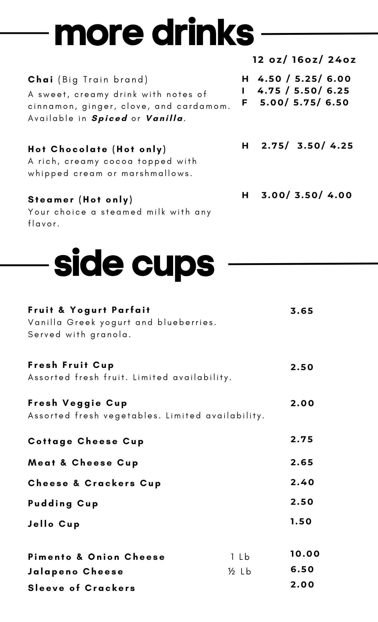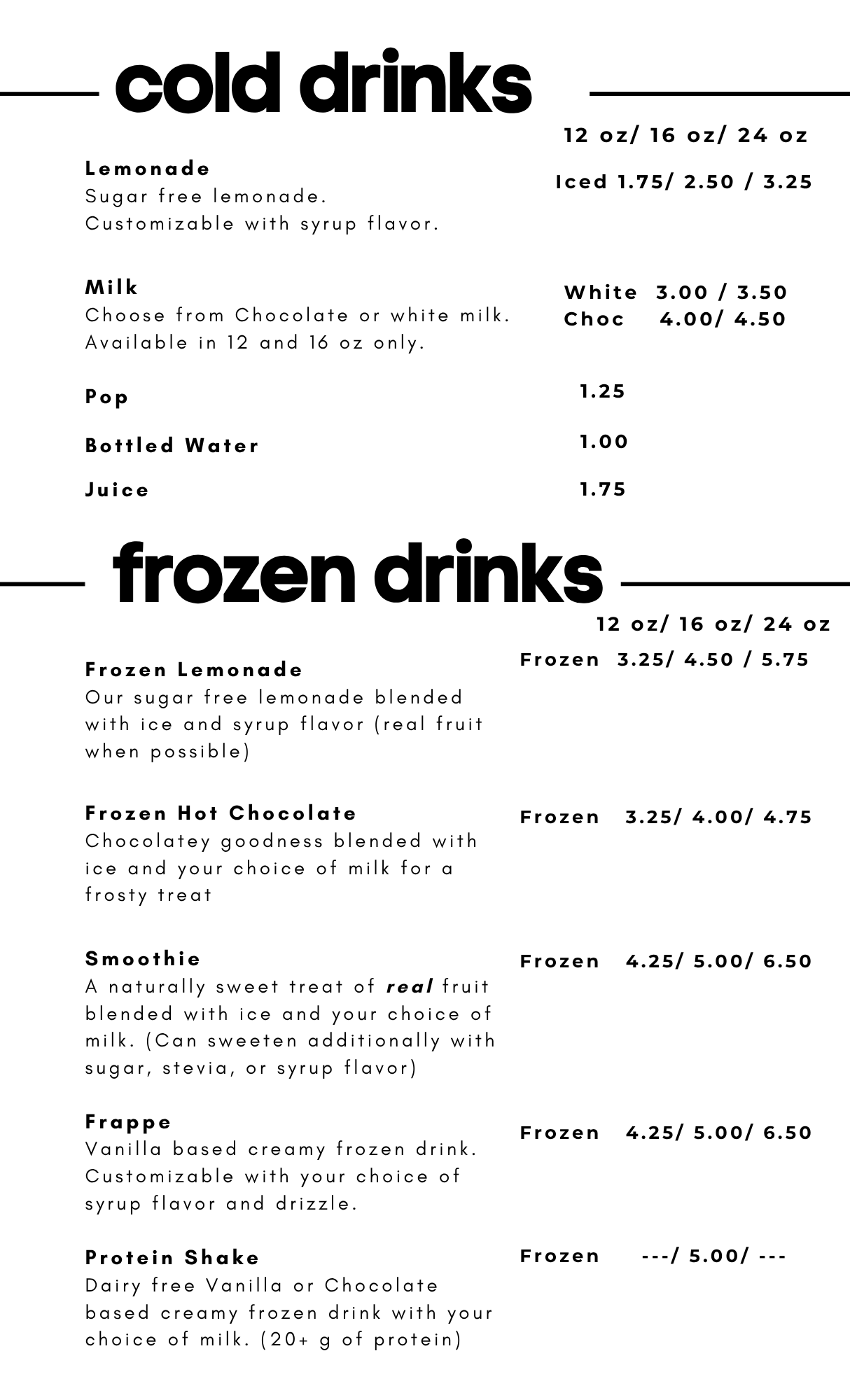 A wide variety available daily. Egg free, gluten free, or dairy free options are available.